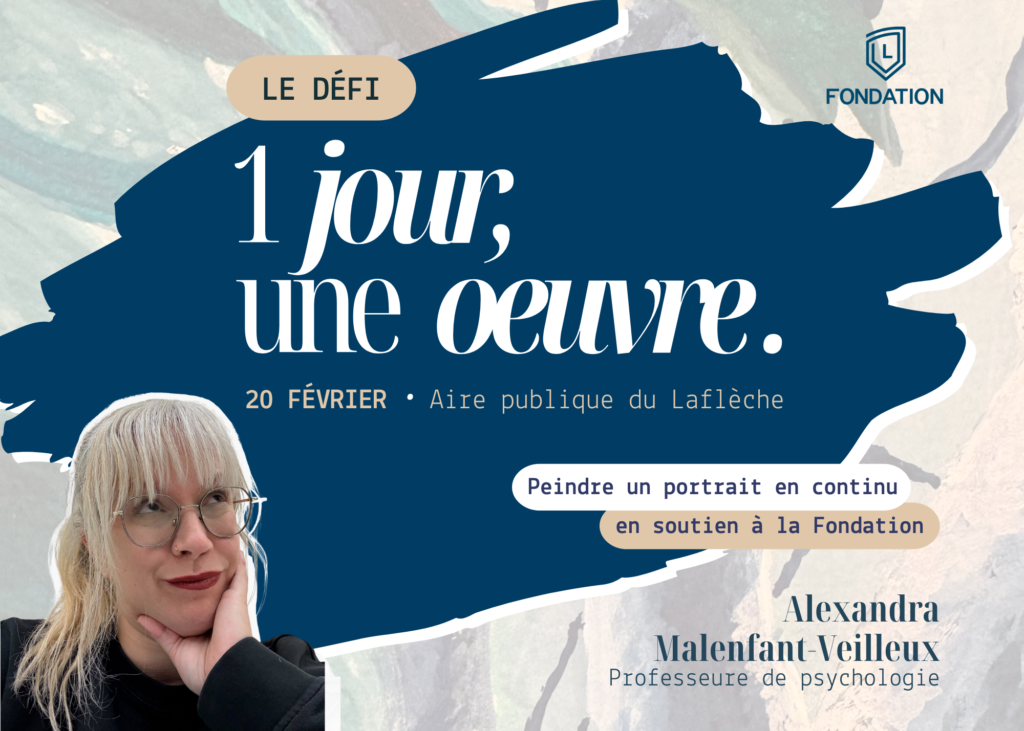 Créer une œuvre en continu en l’espace d’une journée, le vendredi 20 février, pour soutenir la Fondation du Collège Laflèche. C’est le défi dans lequel se lance Alexandra Malenfant-Veilleux , professeure de psychologie au Collège Laflèche.