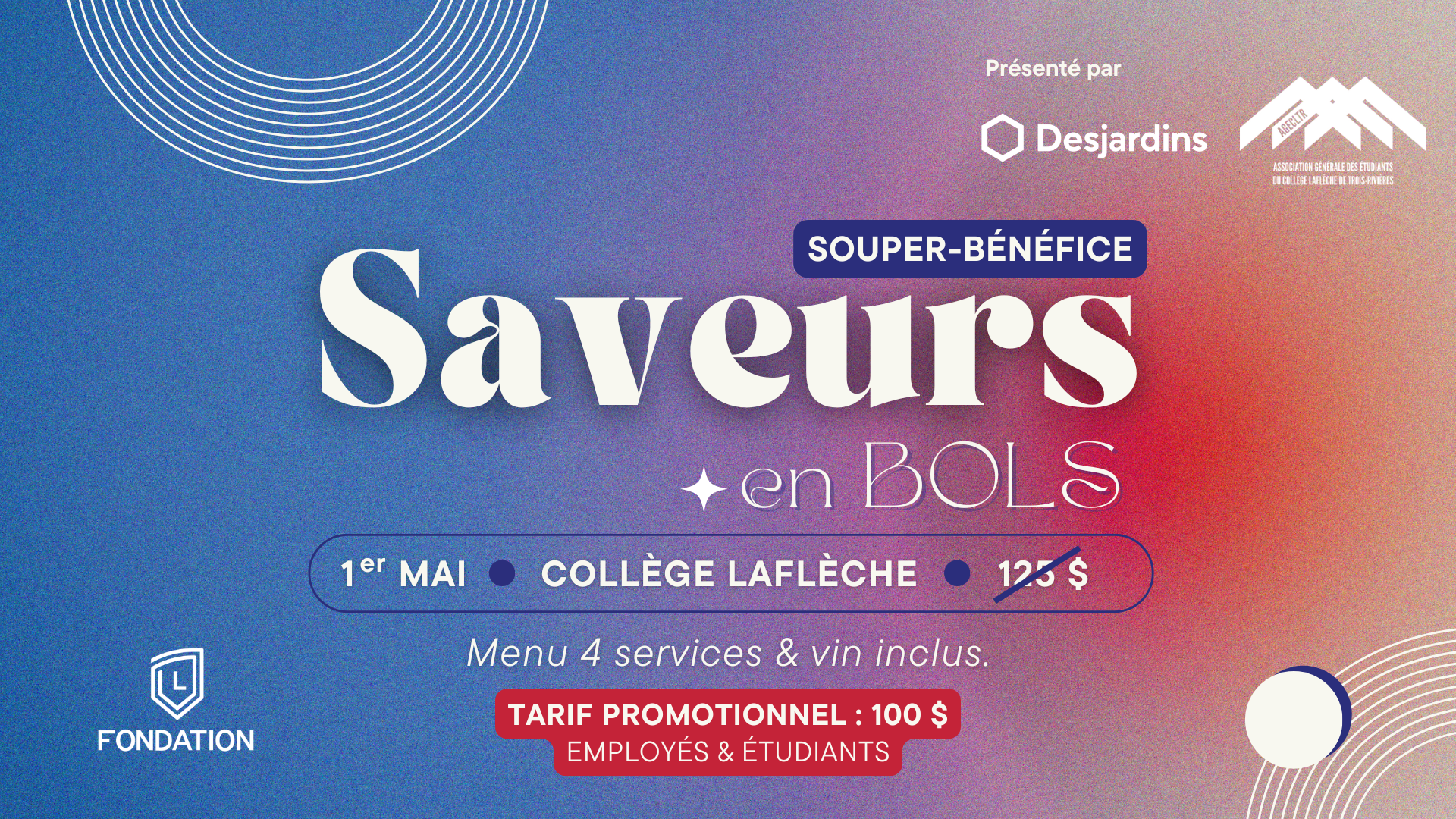 Les billets sont disponibles au coût de 100 $* pour la communauté du Laflèche (employés et étudiants).