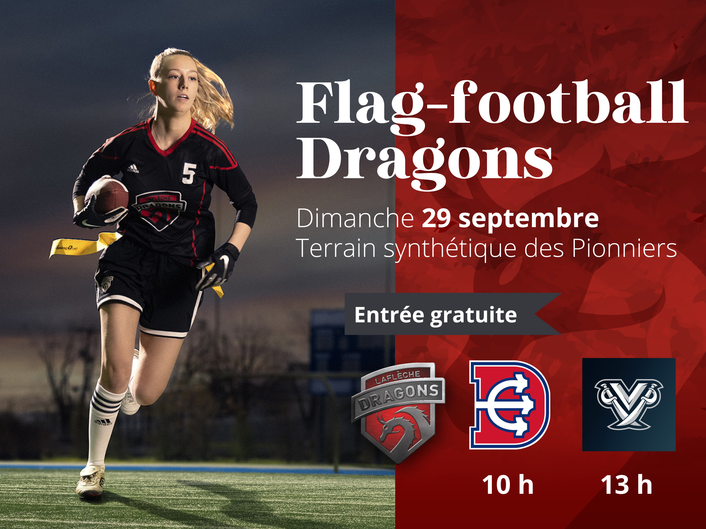 Nos Dragons flag-football lancent leur saison ce week-end! Viens les encourager!