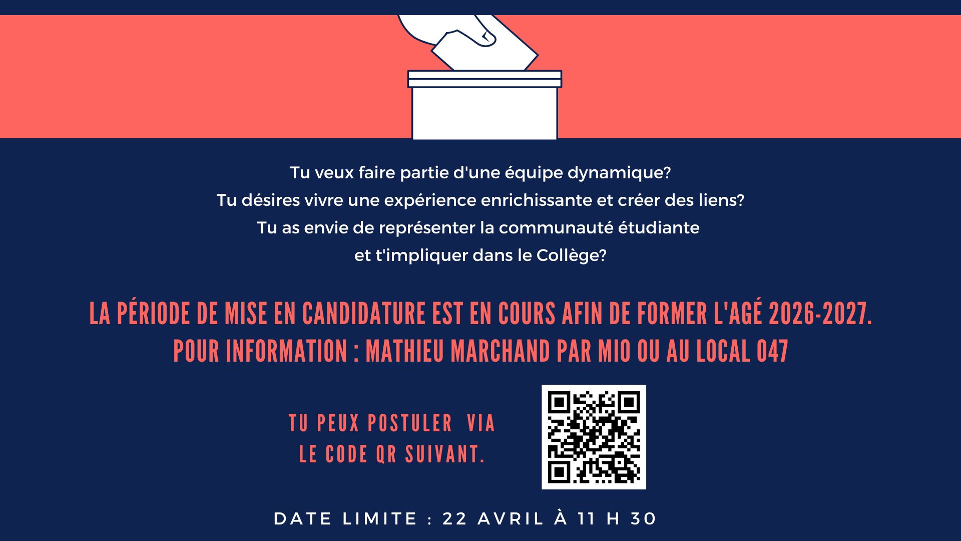 Période de mise en candidature l’AGÉ 2026-2027