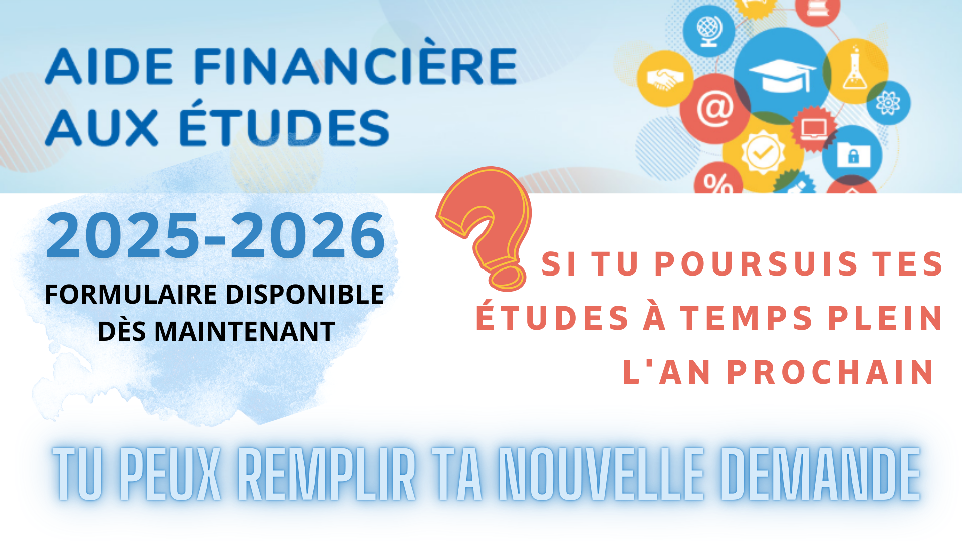 Si tu prévois d’étudier à temps plein l’an prochain, tu peux dès maintenant soumettre ta demande d’aide financière. Pour soumettre ta demande